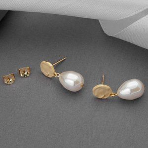 Authentic Sterling Silver and Gold Baroque Freshwater Pearl Stud Drop Earrings
