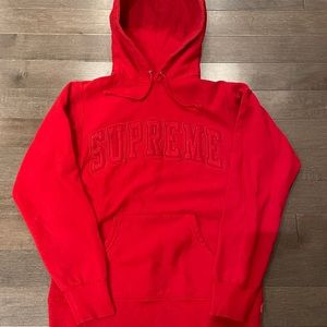 Collector’s Edition. Red Supreme Hoodie. With embroidered SUPREME logo. Thick and comfortable wear. Made in Canada. 100% cotton.