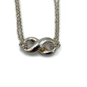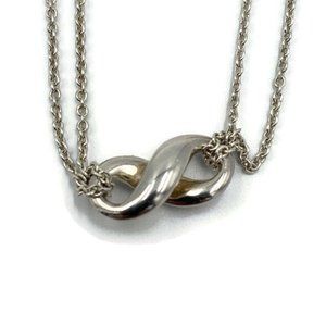 Authentic Tiffany & Co 925 Silver Infinity Pendant with Double Chain Necklace