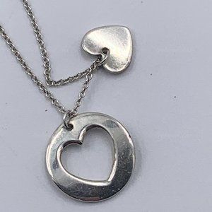 Authentic Tiffany & Co 925 Silver Heart and Circle Tag Pendant Necklace. Chain 16", pendant:15mmx15mm (0.59"). No box. Comes with dust bag. Overall good condition, scratches noted on silver. Very small area of tarnished that is not very noticeable but since it is 925 silver that it can be easily clean. We are not accepting offers. Thank you.