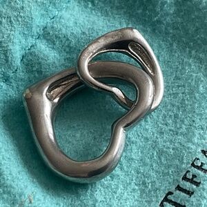 Authentic Elsa Peretti double heart 💕 one bigger than the other one. The small one is 16mm. See pictures with measurements. Needs to be professionally cleaned which can be done by Tiffany stores first free.