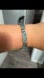 Stylish bracelet featuring turquoise geometric designs set in silver.