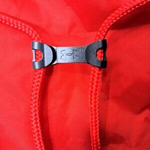 Under Armour Logo Sackpack Gym Bag with two front pockets. Genuine Brand. Everyday Gym Bag. Durable material withstands daily wear & tear with an iconic logo on sternum clip to keep cords secure & in place. Easy-cinch draw cord. Well-kept. In excellent Condition. Measures 18.5'' x 14''