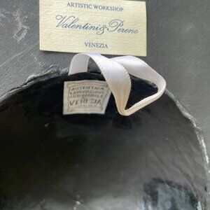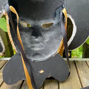 Authentic Venetian Jester Mask Valentini & Pereno Black White Gold Handmade Around 14" in length. This stunning Venetian mask is a handcrafted piece from the Artistic Workshop of Valentini & Pereno, Venezia. Featuring a dramatic jester (joker) style with a three-point crown and gold bells, this mask is divided into elegant black and white halves, adorned with gold leaf and embossed swirl designs. The attention to detail is immaculate—from the intricate golden filigree to the textured roped edges and elegant flourishes. Inside, authenticity tags confirm its Italian artisan origins. Ideal as wall décor, cosplay, masquerade events, or a unique collector's display.