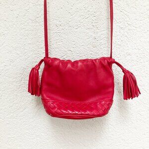 Authentic Vintage Bottega Veneta Woven Small Drawstring Mini Bucket Bag Purse With Tassels