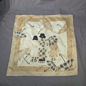 Authentic Vintage Burberry London Silk Scarf Handkerchief - Umbrella Check Scene