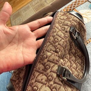 Sleek black leather bag. Perfect for any occasion.In good used condition.Vintage.Has signs of vintage wear.No rubs or tear.Leather intact but has hair lines in some part.Gold Hardware has faded.Zipper puller part has missing.Leather lining inside.Pls don’t hesitate to ask question just in case.