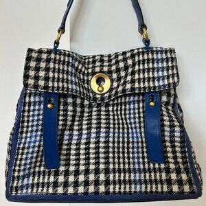 Authentic YSL Muse Two Houndstooth Leather Top Handle Bag