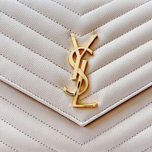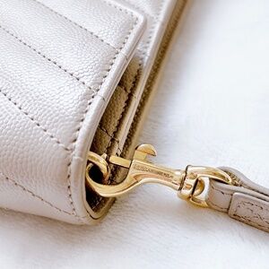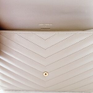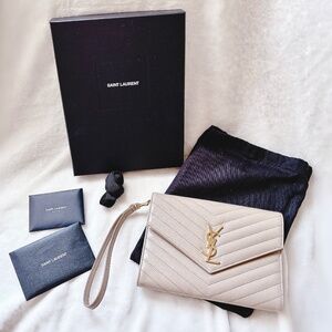 Authentic YSL New Pouch Monogram clutch bag Dark beige