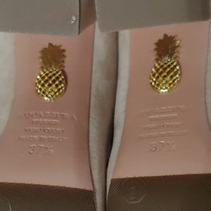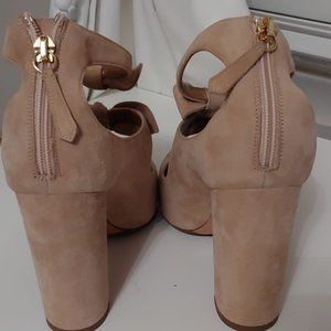 Absolutely stunning shoes - purchased for my daughter for her grad ceremony which didn't happen due to covid - so they just sat in her closet. We paid to have the "topy" heels put on from the cobbler before she was going to wear them, but sadly the event didn't happen and these beauties were never worn. Tan beige suede with sweet bow accents. Size 7.5. Comes with the dustbags.
