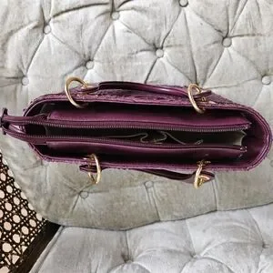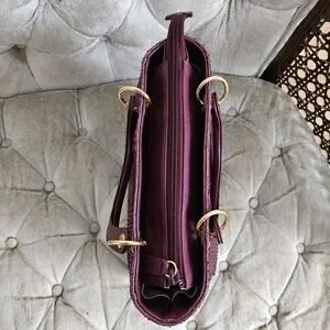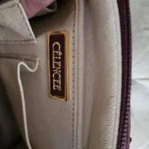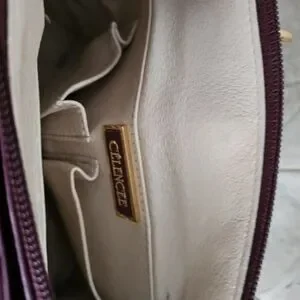 in very good condition,it has middle zipper compartment with zipper pocket and slid pocket,and it has 2 sides compartment. minimum signs of usage.Red wine color