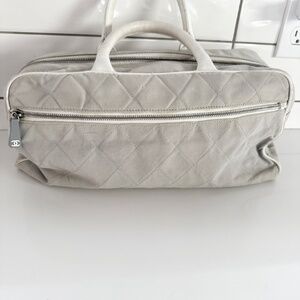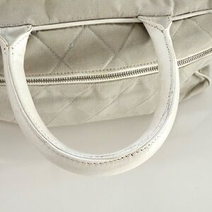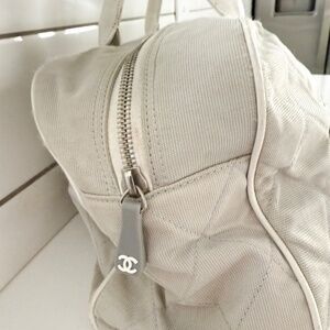 Rare find! Elevate your accessory collection with the authentic vintage Chanel Sport quilted Boston bag. Crafted from durable canvas in a versatile gray hue, this bag is as functional as it is stylish. The iconic quilted pattern adds a touch of sophistication, while the supple leather handle provides a comfortable grip or an elegant drape over the arm.Inside, you'll find a luxurious ivory lining that complements the exterior color scheme, ensuring your belongings are cocooned in premium style. Whether you're on the go or enjoying a leisurely day out, this Chanel Boston bag from the esteemed Chanel Sport product line is a timeless addition to any ensemble.