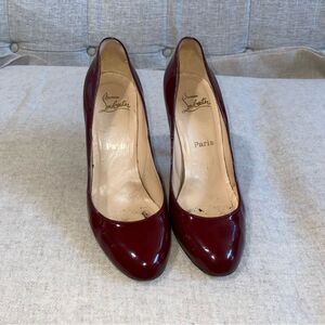 Authentic Christian Louboutin Burgundy Patent Leather Fifi 115 Pump Size 40