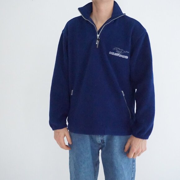 Autobahn Mustang Navy Fleece Quarter Zip Pullover Sporty Y2K Car Culture L