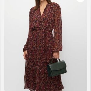 Autres Fills Paisley Sz XS Floral Long Sleeve Dress Tiered Skirt Sash Waist Nwt