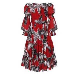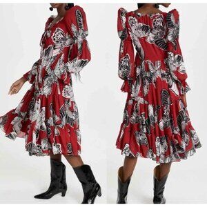 Autumn Adeigbo Fleur Sz 4 Dress Red Black Georgette Butterfly Long Sleeve new