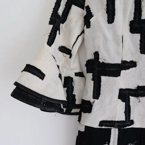 Step into refined elegance with the Autumn Adeigbo Giada Dress in Cream & Black. This stunning midi dress features striking bell sleeves and a sophisticated color palette of cream and black, offering a timeless look with a modern twist.