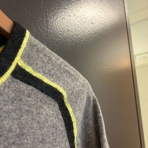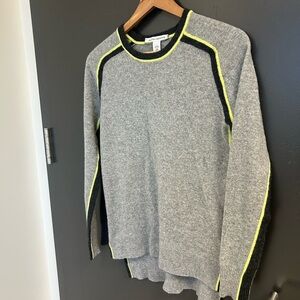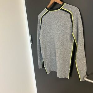 Autumn Cashmere M unisex women’s M crewneck sweater COULOR is tough to pic- the lighter gray when it’s hanging up on the door is the colour! very very good condition sold at Revolve- ultra nice- shorter front and longer back. featuring a sleek gray base accented by vibrant yellow trim. The solid knit fabric and long sleeves offer a cozy fit, while the contrasting details add a touch of sporty elegance to your wardrobe.