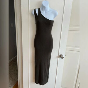 Autumn Cashmere Slash One Shoulder Rib Midi Dress, in army green, size medium