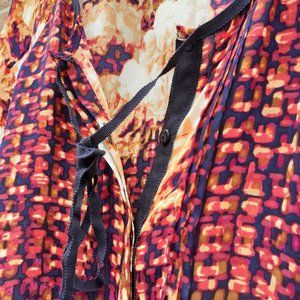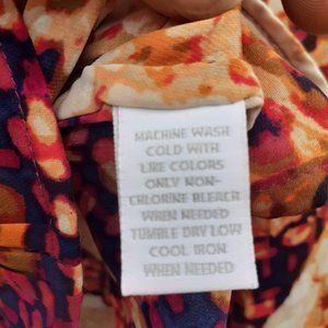 Autumn Colors Flower Boho Satin-feel Flowy Button L/Sleeve Blouse 1X,measurement