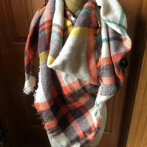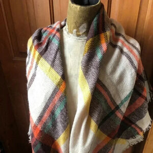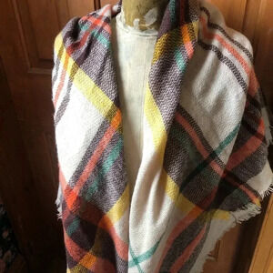 Super cozy and warm! 55 1/2” x 55 1/2” with the fringe. I can’t remember where I bought this but it’s adorable for the fall!