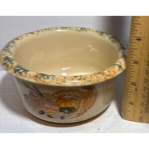 Autumn Harvest Fruit Bowl Crock Vintage Ceramic With Cornucopia Design 5.5"