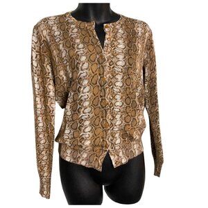 Ava Paige Tan Snakeskin Animal Print Knit Cardigan Sweater Size Small