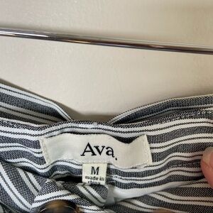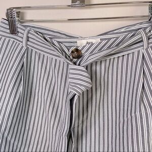 Ava. Vertical Striped Tie Belt Paper Bag Shorts High Waist Grey White Medium