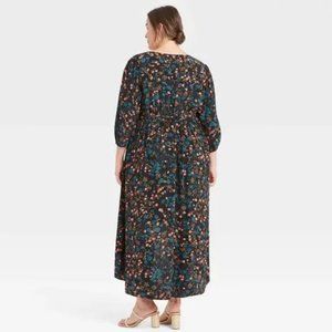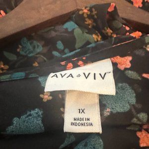 NEW Ava & Viv 1X Floral Faux Wrap Dress Hi-Lo Hem Belted 3/4 Sleeves Black/Pink