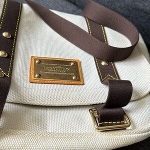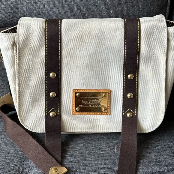Authentic lv crossbody/shoulder bag in used condition has dirt in some areas but it’s washable fabric