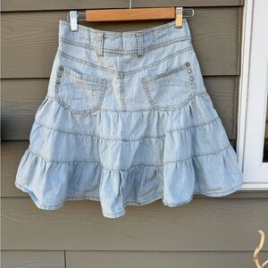 Avanti Blue Skater Mini Skirt Tiered Casual