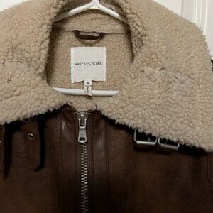 Avec Les Filles Aviation jacket in faux suede with sherpa lining and hood.