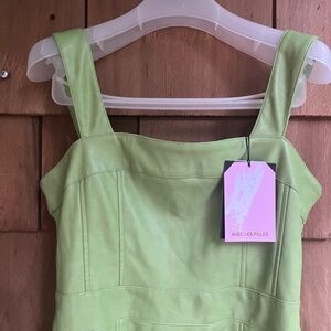 Avec Les Filles Anthropologie Faux Leather Fit & Flare Mini Overall Dress Size 4