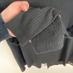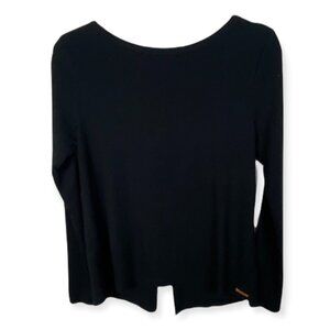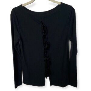 Avec Les Filles Black Tie Back Long Sleeve Ribbed Tee Womens Size Small Ribbons