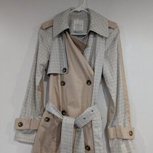 Avec Les Filles Plaid Trench Coat Beige Size Small