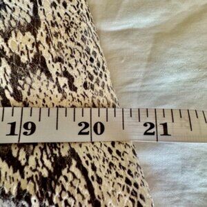 New without tags Avec Les Filles High Standards ivory snake print double-breasted trench coat, size XS. Vegan leather in a chic snakeskin print, a collared neckline, notched lapels, and long sleeves (with shoulder epaulets and belted cuffs). A sleek, long silhouette boasts double-breasted closure (with matching covered buttons) and a waist-cinching, adjustable belt. Vertical welt pockets and a kick pleat at back complete the look. One darker mark on inner lining from previous sticker as shown in photo 11. Warm with a nice weight to it. Bust measures 17.5 inches flat, waist measures 16.25 inches flat (intended to be adjusted smaller with belt), hips 20.5 inches flat, length from shoulder to hem is 42 inches. Cat friendly, nonsmoking home.