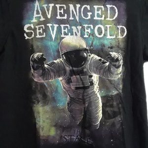 Details- Black shirt with Avenged Sevenfold The Stage graphic