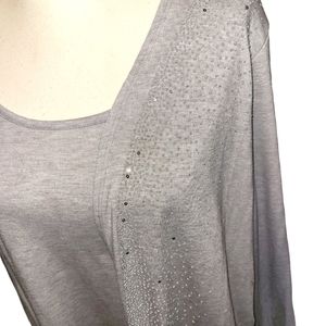 This is a Gray top from the Avenue plus size 18/20 long sleeves with Built-in cardigan. It has sparkling beautiful Beaded detail on front panel of cardigan