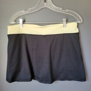 Black skort with light greenish/yellow waist band and short.