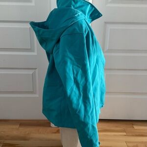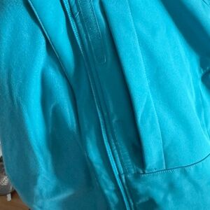 Lightweight and functional with a hood and zippered pockets. Great for walks, workouts, or layering in cooler weather. In great condition.