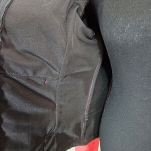 Stylish red jacket with black accents. Perfect for a bold look. Length 25" Bust 42" Sleeves 24"