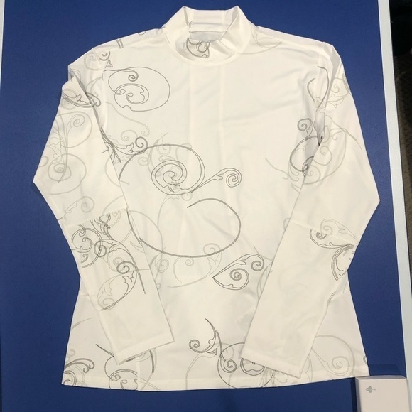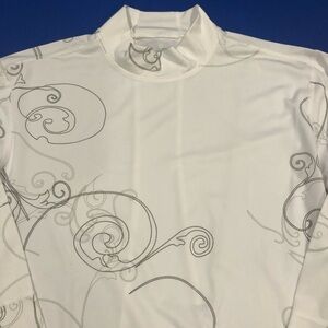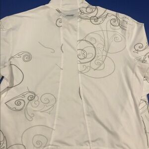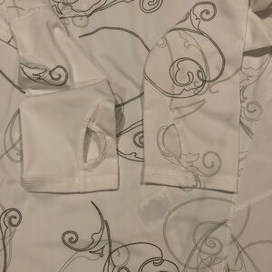 Avia workout long sleeve shirt. Size XL, white with a nice swirl design. Small zippered pocket in back, thumb holes. No stains or pilling.