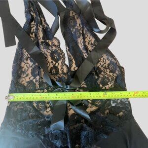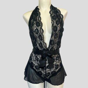 This elegant black lace halter teddy is perfect for a romantic evening. The intricate lace design adds a touch of sophistication, while the halter neckline provides a flattering fit. Ideal for adding a hint of allure to your intimate collection.