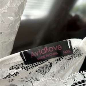 Avidlove White V-Neck Lace Mesh Teddy BabyDoll Open Back w/ Panty Lingerie NWT