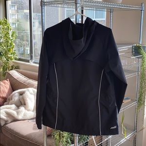 Perfect condition windbreaker. Black with reflective detail. Hood and shell is weather coated. Fitted