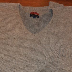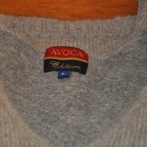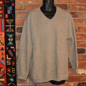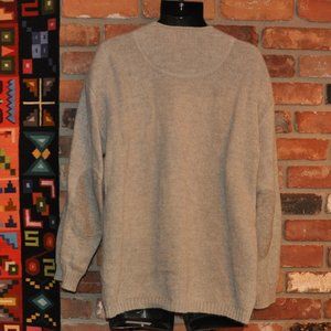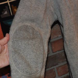 Avoca Tan Grey Brown Wool Knit Sweater. Elbow Patches L