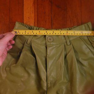 Avocado Green Vegan Leather Shorts w Pockets - sz Small