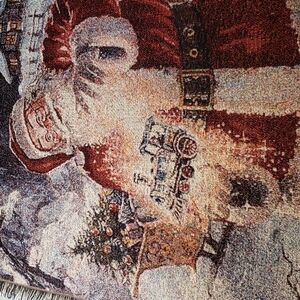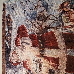 Avon 2004 Throw Blanket Christmas Tapestry Santa Clause Gold Treading
