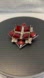 Ruby red glass square inserts with clear rhinestones on a gold tone setting