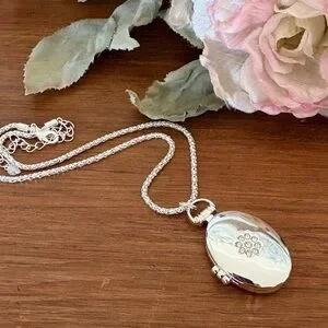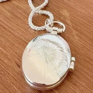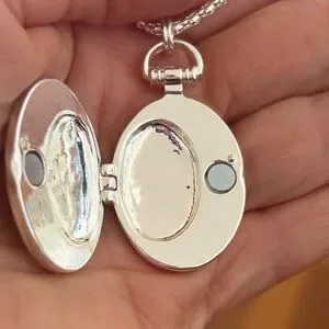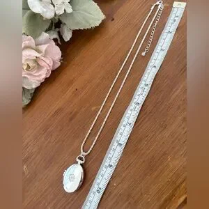 • Silver tone oval photo locket